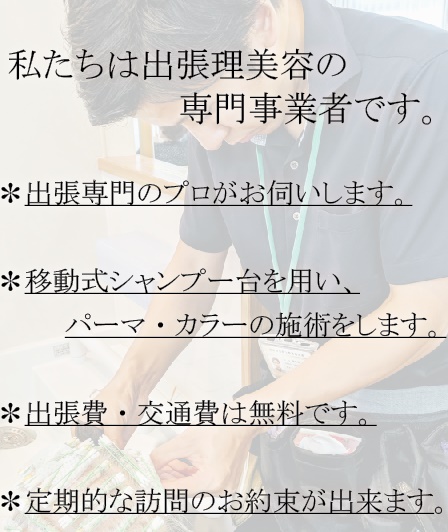 | NPO法人日本理美容福祉協会認定 福祉理美容士4名 介護初任者研修1名 |